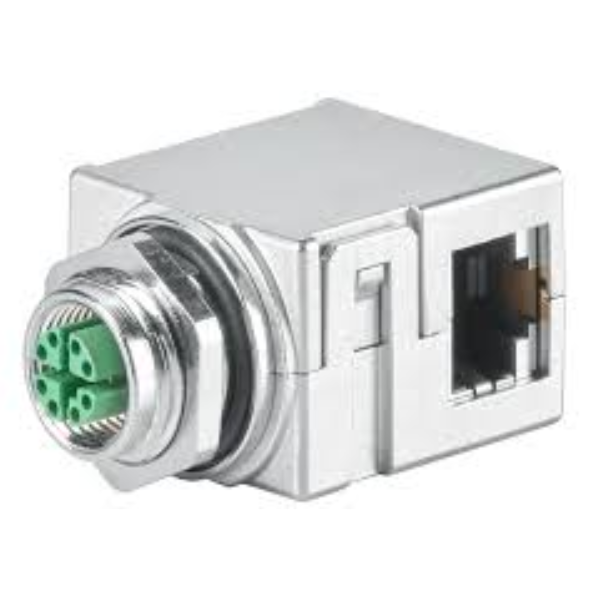 IE M12 Panel Feedthrough 4x 2 pasatapas para armario para transición de sistema de conexión M12 , (codificación X, IP65/67) a sistema de conexión RJ45 IP20 1 paquete = 5 unidades