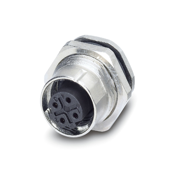 Conector de montaje trasero, 4 posiciones, zócalo recto, M12-SPEEDCON, codificación D, soldadura por ola. Se prevé que este producto esté libre de plomo a partir del segundo trimestre de 2026, de conformidad con la normativa RoHS II, sin excepción 6c (Pb < 0,1%). Se puede solicitar una alternativa libre de plomo con antelación.