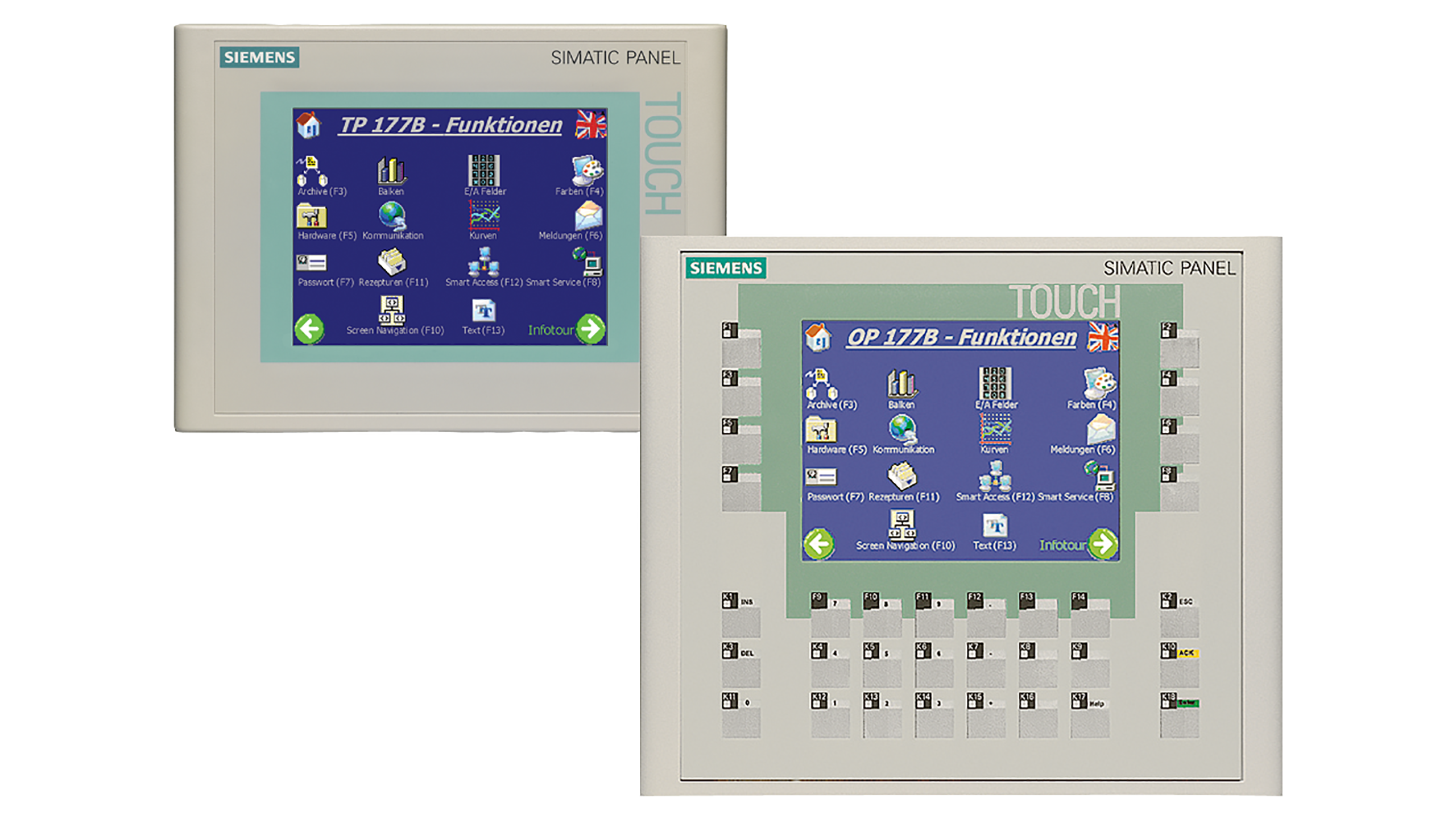 Pantalla a color SIMATIC TP 177B de 6″ PN/DP STN 256 Protocolo MPI/PROFIBUS DP Interfaz RS485/RS422/USB Interfaz Ethernet 10/100 Interfaz de impresora Ranura para MMC Configurable con WinCC flexible 2005